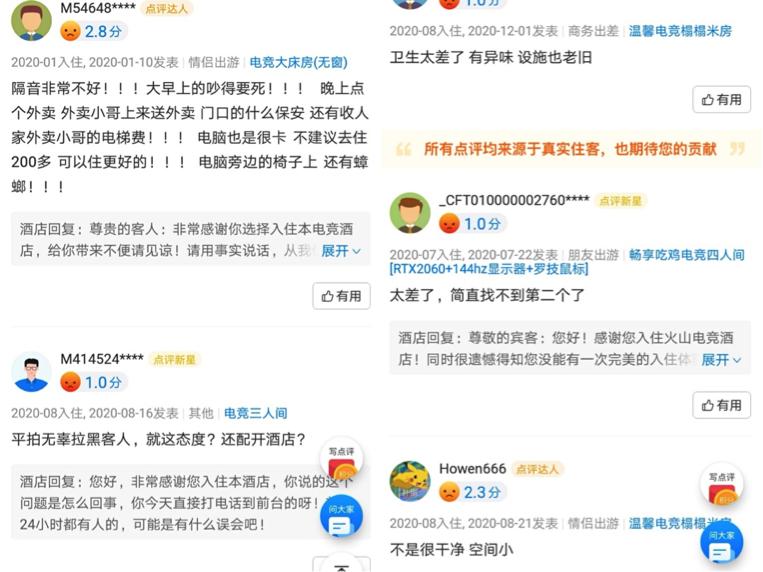 与此同时,前期的野蛮生长使整个行业鱼龙混杂,很多人在早期体验后甚至只留下了“电竞酒店就是带低配置电脑的青旅”的刻板印象。锌刻度通过翻看部分电竞酒店在OTA平台上的评价时发现,“床品卫生堪忧”、“洗漱用品质量差”、“隔音条件差”等吐槽遍地皆是,基础设施的不过关的确劝退了部分尝鲜者。