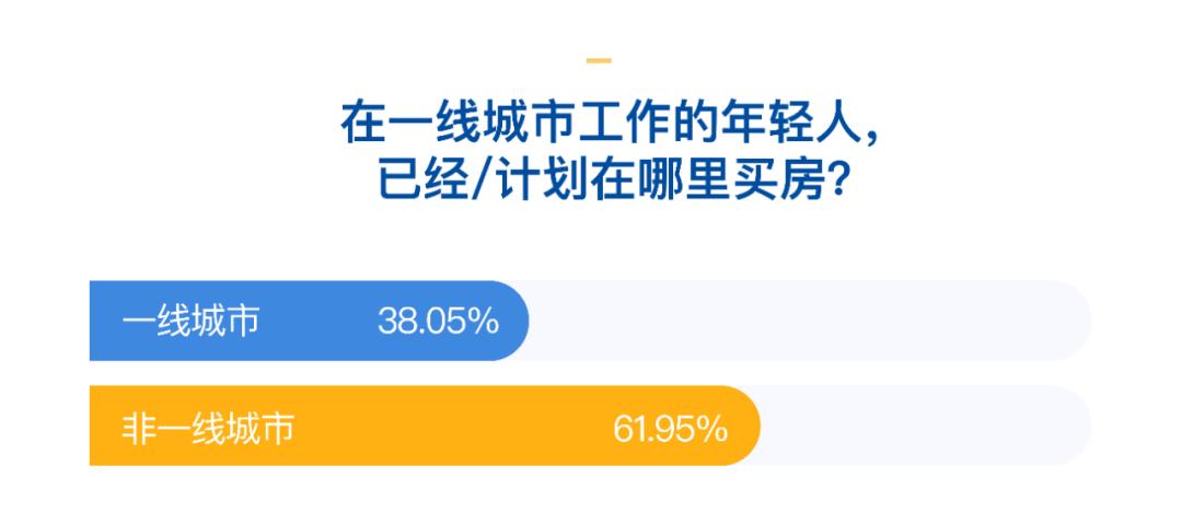 我们在调查中发现,在一线城市工作的年轻人中,「已经或计划在一线城市买房」的占38.05%,「已经或计划在非一线城市买房」的则占了61.95%。