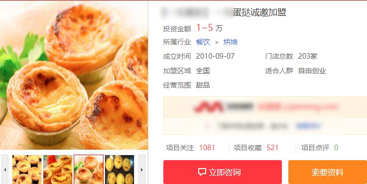 开一家蛋挞店的成本也并不是很高,一个小门面就能开张,加盟费可以低到1万块,堪称是小本生意的典型了。