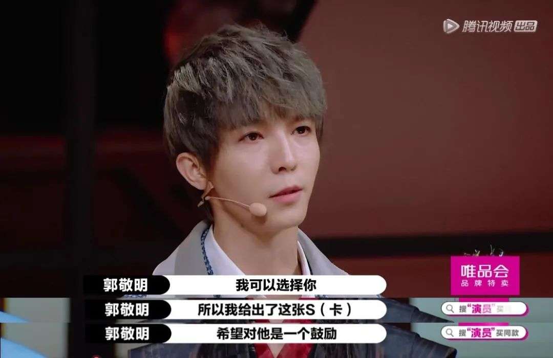 《演员请就位2》中,郭敬明为了鼓励新人,将一张S卡发给了毫无演技的流量明星何昶希。