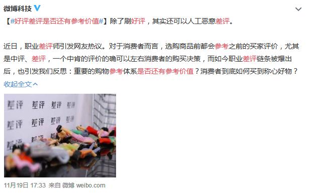 最近,#好评差评是否有参考价值#上了微博热搜,原因是职业差评师的恶意差评。
