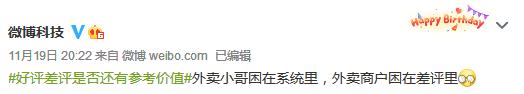 “好评差评”正困扰着外卖从业人员,正如微博上的那句话:外卖小哥困在系统里,外卖商户困在差评里。