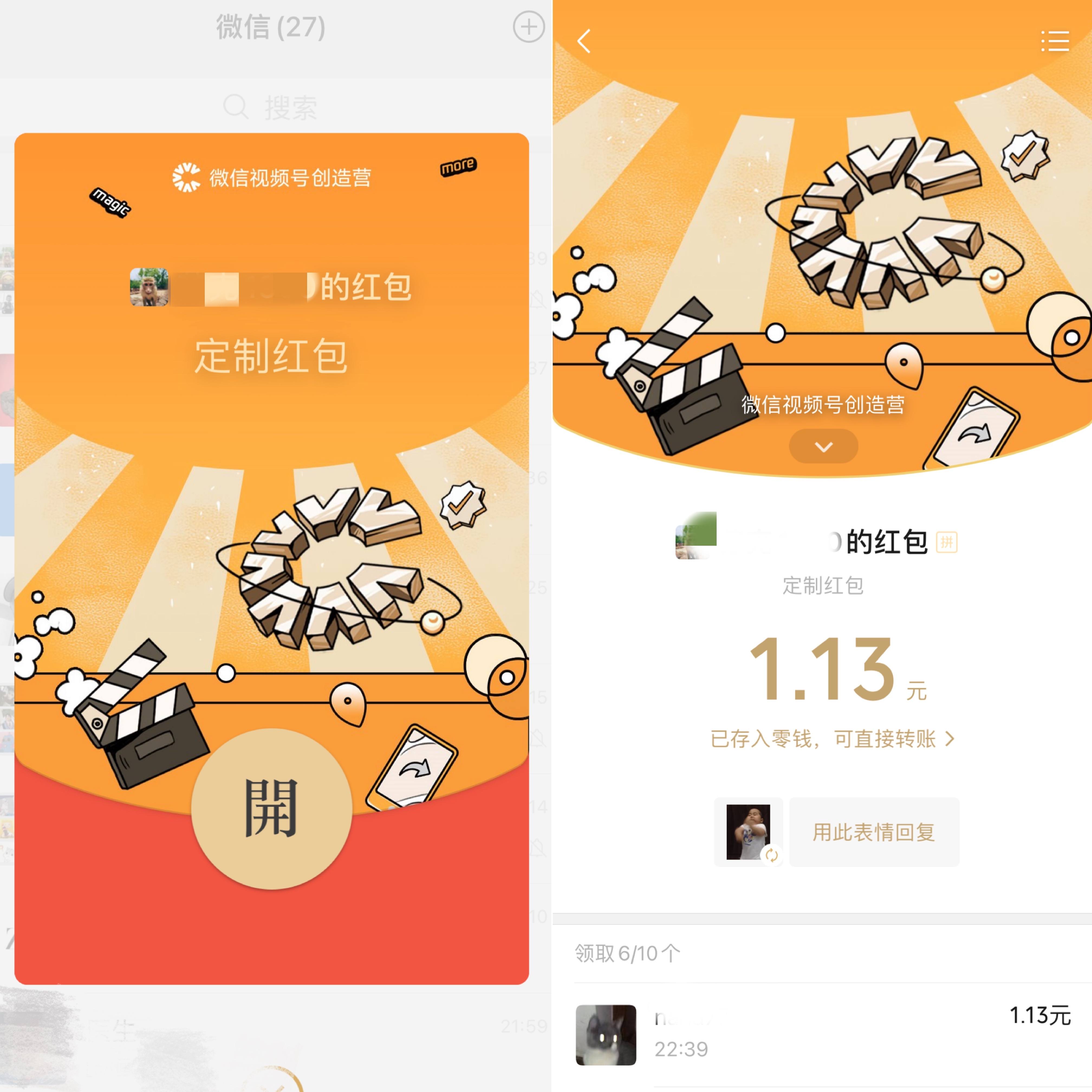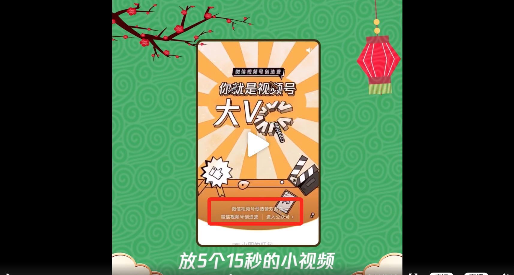同时,据腾讯微信团队发布的视频介绍,用户打开红包后,可以点击跳转到创作者的微信公众号主页。同时,创作者可以在红包内放入最多5个15秒的小视频。从红包到视频号的跳转功能也将在后续实现。