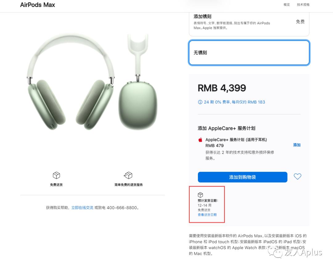 12月8日晚,苹果悄然发布了旗下的头戴式旗舰耳机AirPods Max,高达4399元的售价并没有阻止用户的热情。截止写稿前,苹果这款全新的AirPods Max的发货日期已经排到了3个月以后。