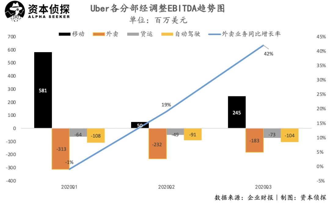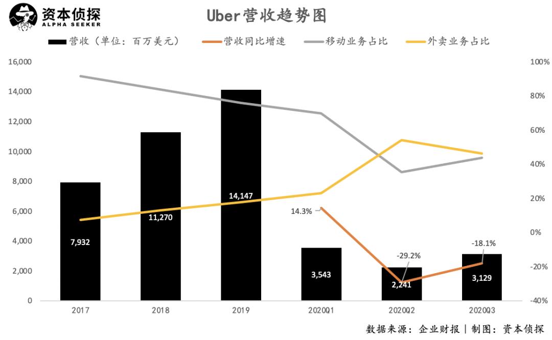 此外,今年以来Uber业务结构最大的变化在于,Uber似乎正从一个网约车平台转变为一个外卖平台。