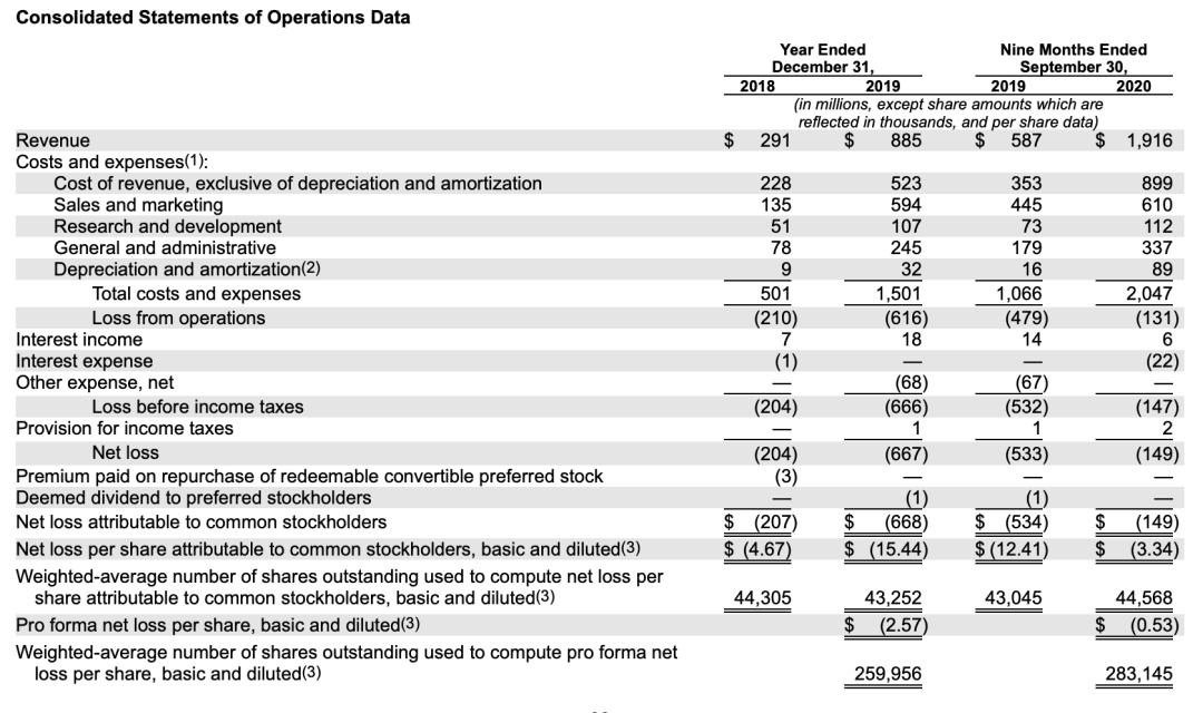 2020年前三季度DoorDash的净收入为19.16亿美元,但和竞争激烈的快递市场中的许多公司一样,DoorDash仍在亏损,2020年前三季度的净亏损为1.49亿美元。实际上,本次上市的DoorDash也在招股书中写明“ 未来可能无法维持或增加盈利能力”