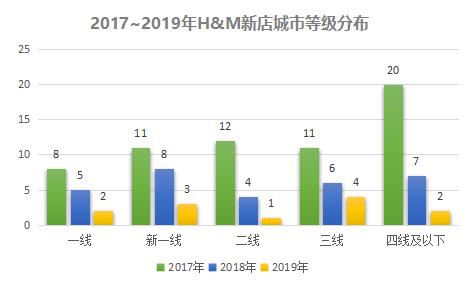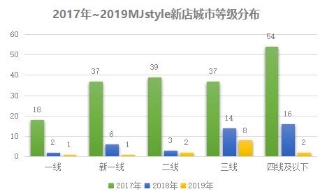 MJstyle和H&M从2017年就开始“用力下沉”。这年,四线及以下城市是MJstyle绝对拓店之地,为54家。而三线、四线及以下拓店总数为91家,远超新一线和二线的76家。