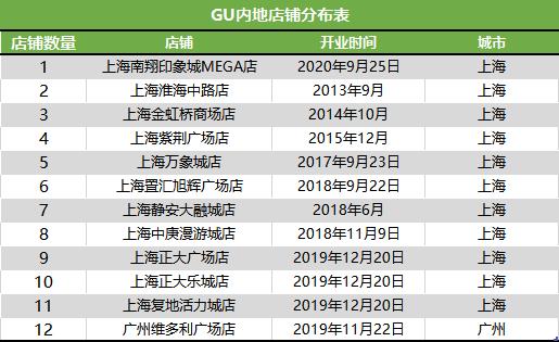 而根据GU官方数据,其目前在内地的12家店,全部开在一线城市。近期,继其在上海开设新店后,在香港又再拓一店。进入内地市场7年,GU却始终未曾触电低线级市场。