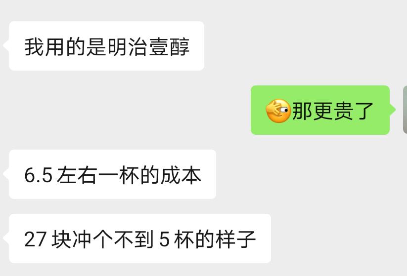 一杯速溶的成本,立马涨到10块以上。(三顿半普通速溶3g装的价格区间为5-8元,视优惠活动而定)