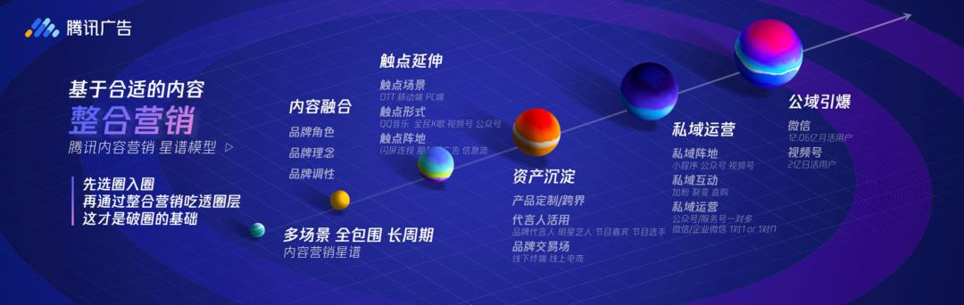 圈层化是指从横向来看,这些内容可以进一步细分出音乐、体育、新闻、游戏、动漫等不同分类,而由内容建立起的用户圈层又能够衍生出更多的营销想象力。“音乐是内心的圣所,体育是激情的高岗,新闻是理性的殿堂,游戏是情绪的热土,动漫是想象的庙宇,人文是灵魂的角落。腾讯的内容矩阵,关注每一个人的每一种需求”,在栾娜看来,内容只要优质、就有价值。