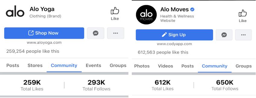 FB 是 alo yoga 社交流量的主要聚集地。如下图,alo yoga 的官方账号有 29.3 万的关注者,而 alo yoga 旗下主打瑜伽免费课堂的 Alo Moves 则收获了 65 万的关注者,在这个账号下发布者一般都上传专业的瑜伽教学短视频和图片或素人的练习视频,参与者年龄跨度大,从儿童到中年男女,用户活跃度高。Alo moves 与 alo yoga2 个账号粉丝量和用户参与度的对比,或许折射内容的影响能力。