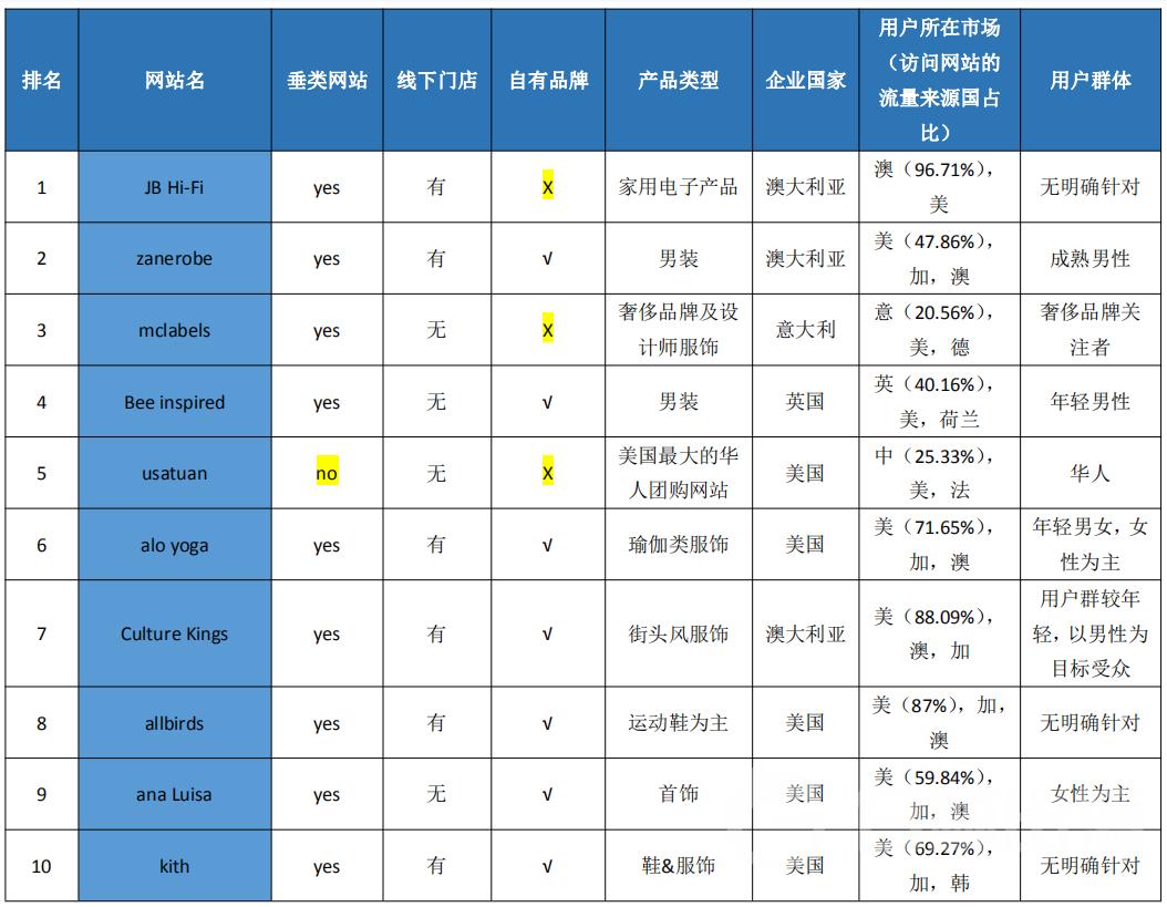 最后一点,10 个网站中,只有三个没有做品牌,这块会重点展开说下。另外,7 个品牌中,有 5 个都拥有线下门店,从线上生长起来的品牌向线下转移,已经是比较明显的趋势。