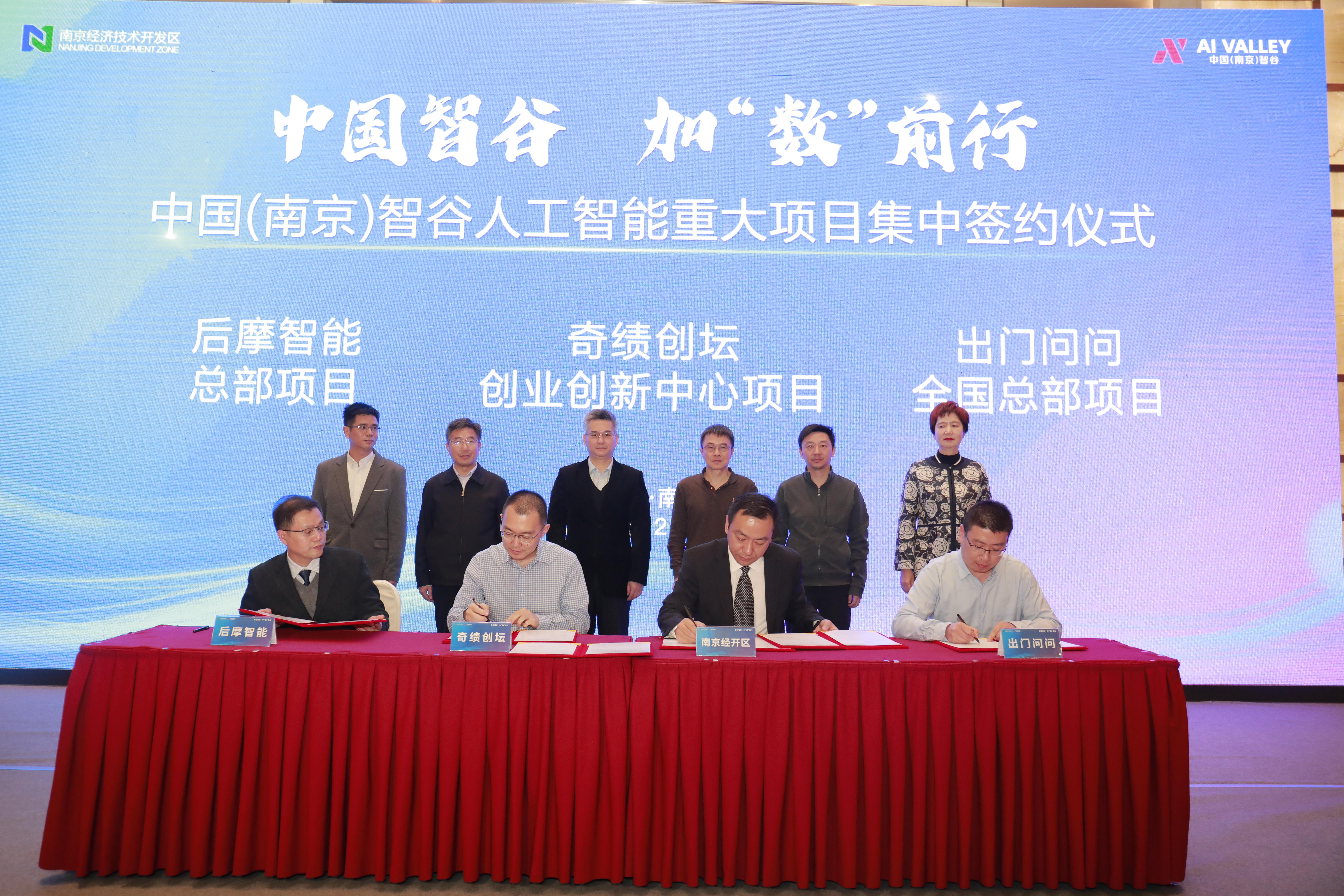 在与会领导的见证下,南京经开区分别与奇绩创坛、出门问问、后摩智能签署合作协议。