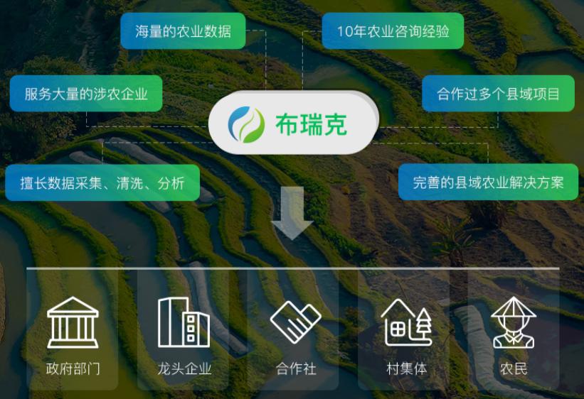 目前,布瑞克农业大数据已服务了全国600多个县域,积累了450政府、220科研院校、15000涉农企业等客户,大宗农产品交易网络覆盖全国120个地级市;在山东莱西、商河搭建的县域农业大数据平台为当地上百家合作社与涉农主体提供数据服务。