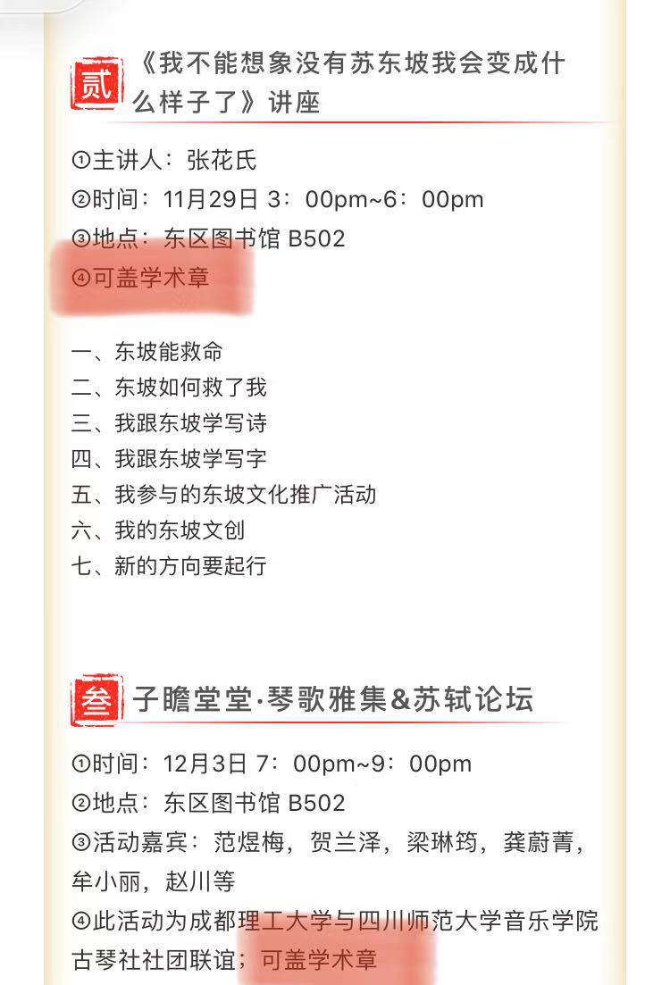 (在社团活动海报上,“可盖学术章”被特意标注)