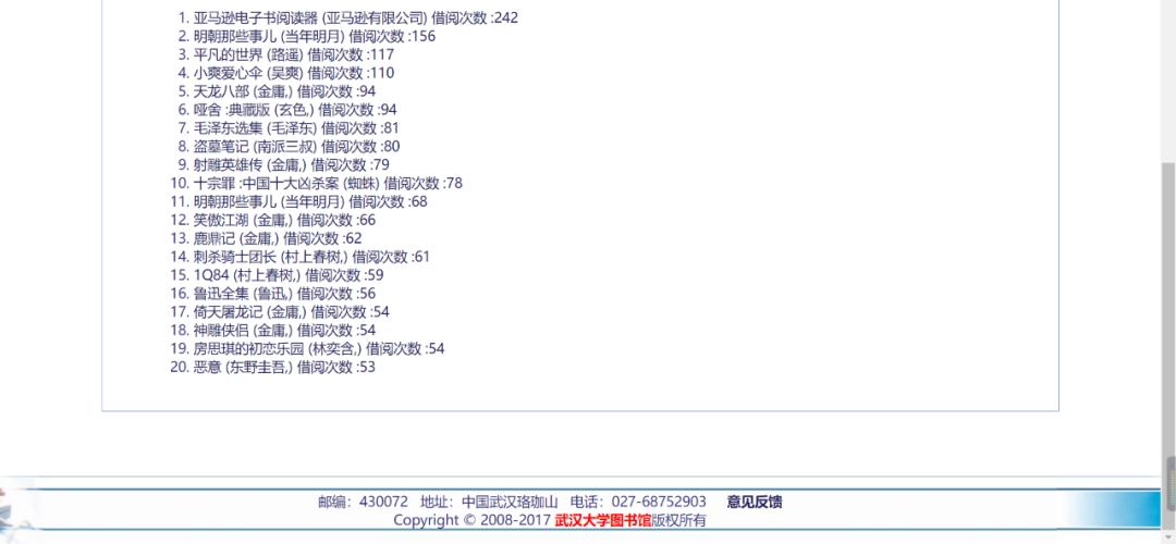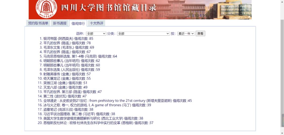 我按照她的思路,通过高校图书馆借阅排行榜试着对其他学校的“文学氛围”进行解答,结果得到了这样的答案: