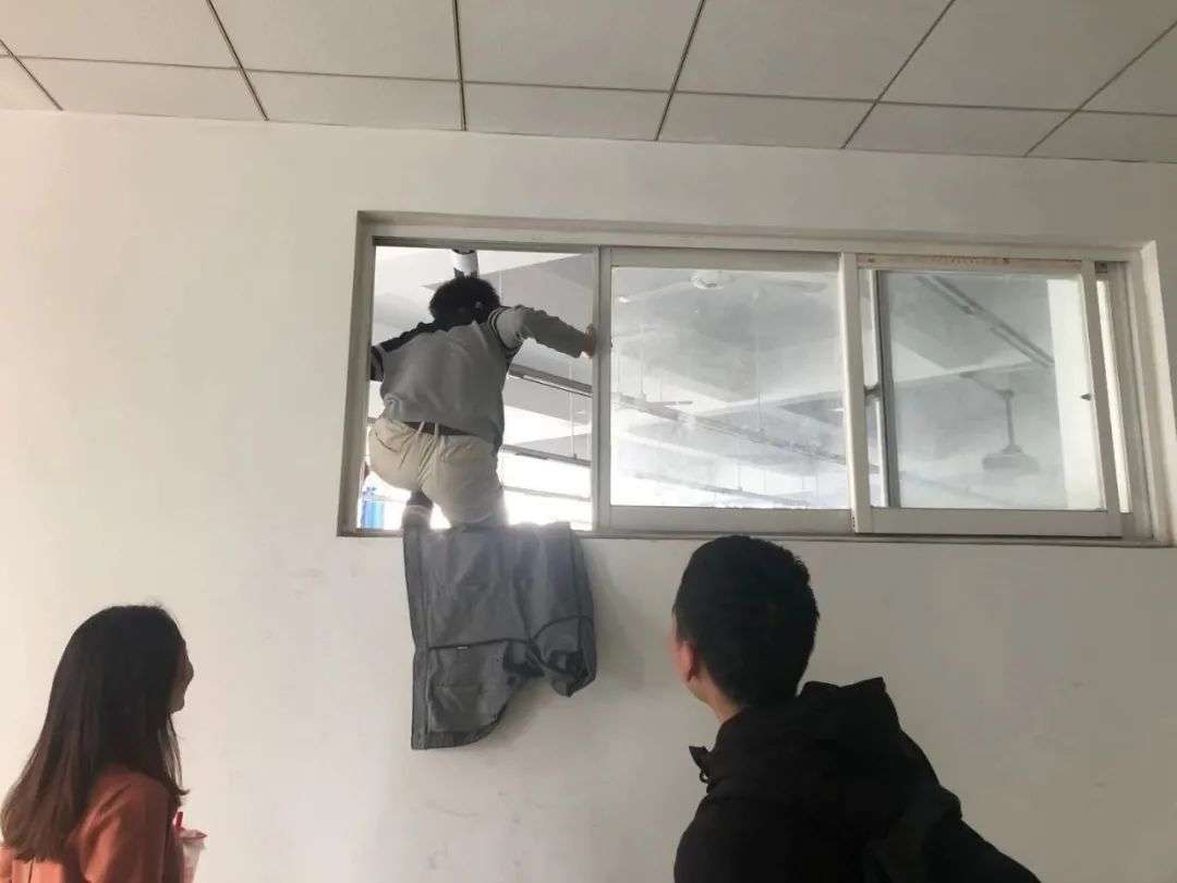 (忘记报备活动场地的社员们,翻墙“借用”教室)