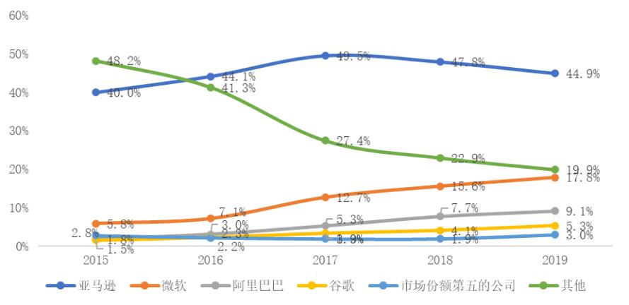 图 7:全球IaaS服务市场份额不断向龙头集中