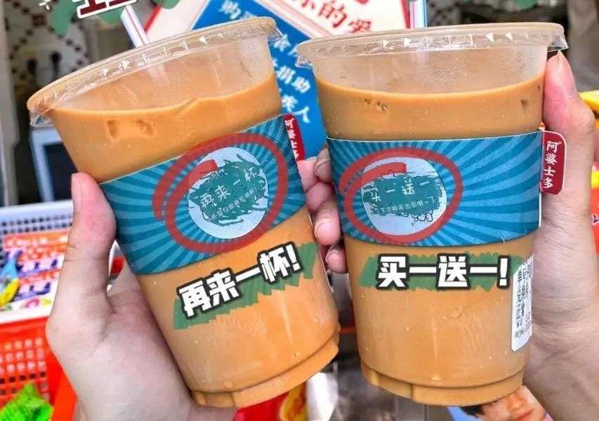 比如把杯套做成“刮刮卡”,购买奶茶,刮开涂层,便可以获得“再来一杯”或者“买一送一”的奖励。