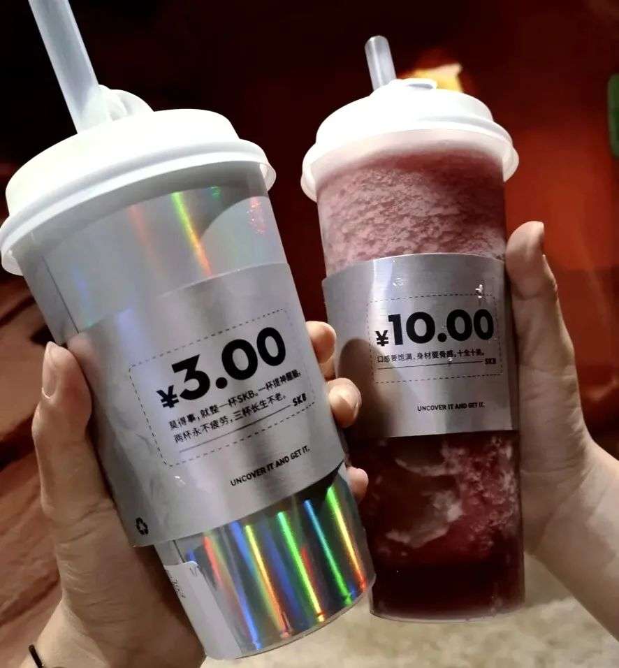 具体操作是,开业前7天,顾客在门店任意点一款饮品,就能随机抽取一个“惊喜杯套”,撕开可见价格数字。活动一共设置了5个不同的价格,顾客撕开后,可以按照杯套上的价格买单,有3元/杯、5元/杯等,最低只要1元/杯。
