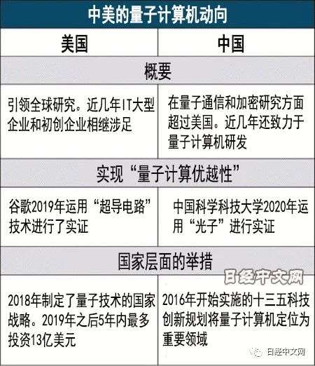 中国与谷歌的主要差异在于技术“方式”。谷歌采用的是通过将物质冷却至极低温度以去掉电阻的“超导”电路来计算的方式。竞争对手美国IBM也采用这种方式,超导方式过去曾是量子计算机开发的主流。