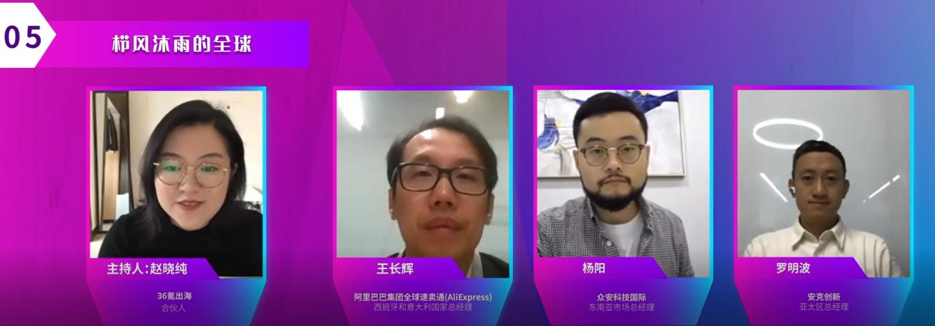 阿里巴巴集团全球速卖通西班牙和意大利国家总经理王长辉、安克创新亚太区总经理罗明波、众安科技国际东南亚市场总经理杨阳在这一环节分享了他们在出海过程中积累的经验。