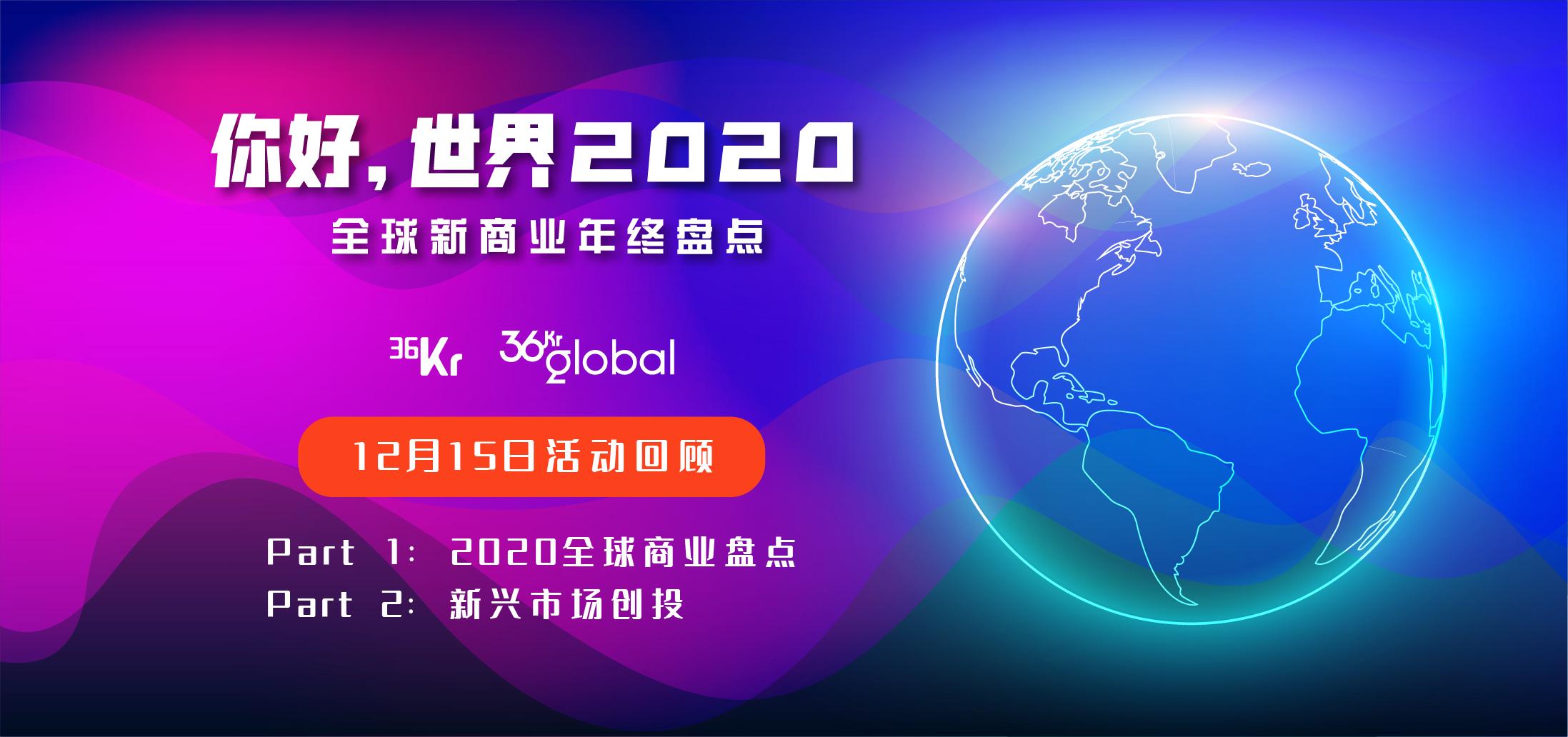 本着回顾与展望的初心,在2020年12月15、16日,36Kr Global 推出「你好,世界 2020」年终盛典。其中分为四个主题,Part 1 ”2020全球商业盘点”,Part 2“新兴市场创投”,Part 3“中国企业全球化”,Part 4“热门产业趋势”。