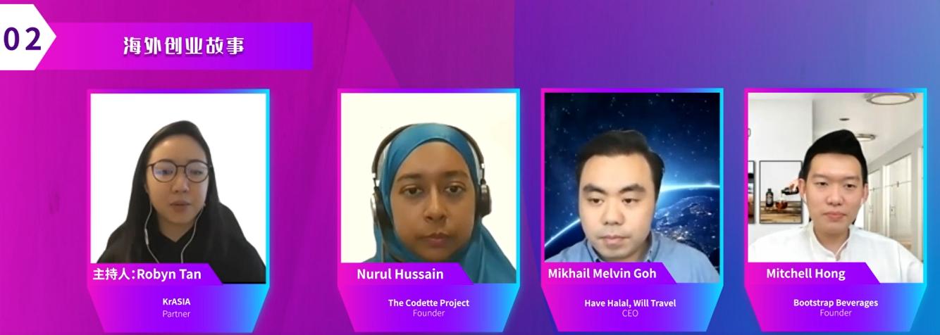 The Codette Project 创始人 Nurul Hussain, Have Halal, Will Travel CEO Mikhail Melvin Goh, Bootstrap Beverages 创始人 Mitchell Hong 三位创业者分享了他们的创业心得和感悟。