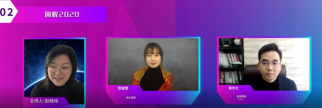 来自博士超懂的范瑞雪和投资家网创始人蒋东文和我们一同分享了他们眼中2020年商业、科技领域的热点信息。