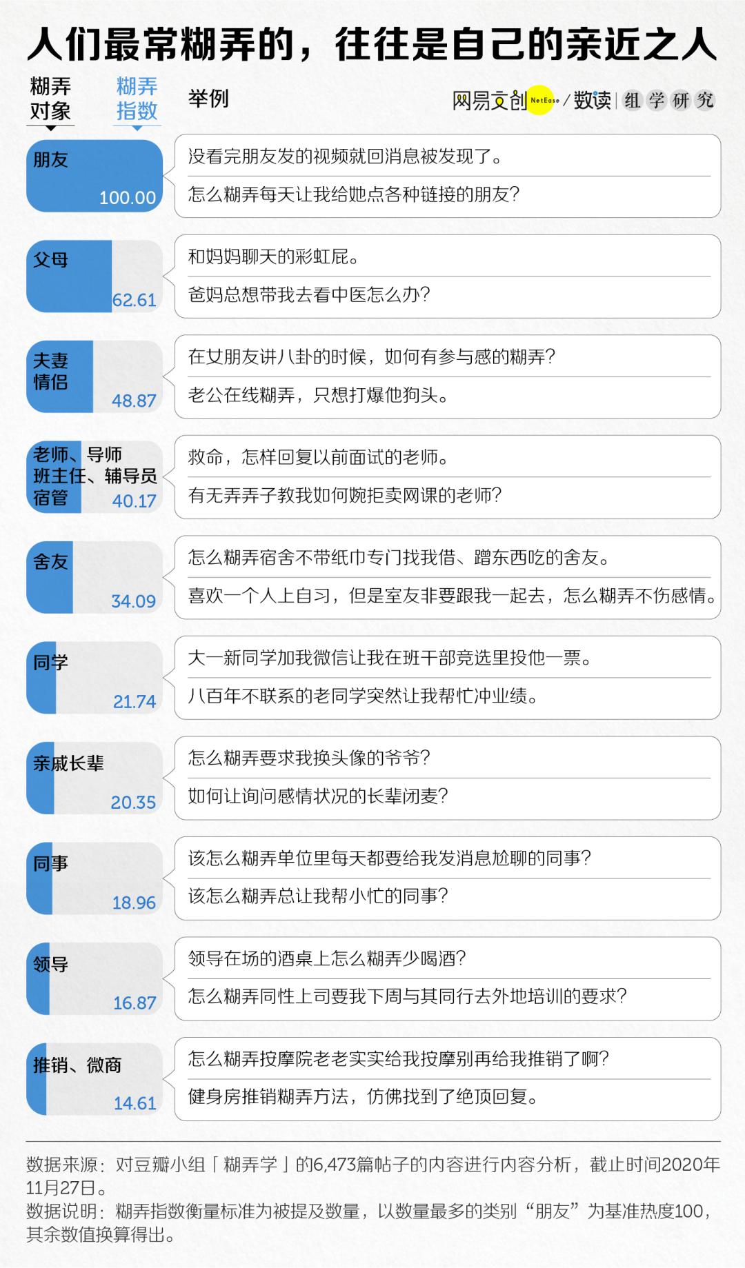 最常糊弄的人是自己的亲朋好友,这更让一些人感到不理解:“糊弄是针对那些说个没完的人、自己无感的人,朋友和自己倾诉或者讨论些什么东西,这也要糊弄?到底会不会尊重人!究竟是在糊弄朋友还是在糊弄自己?”