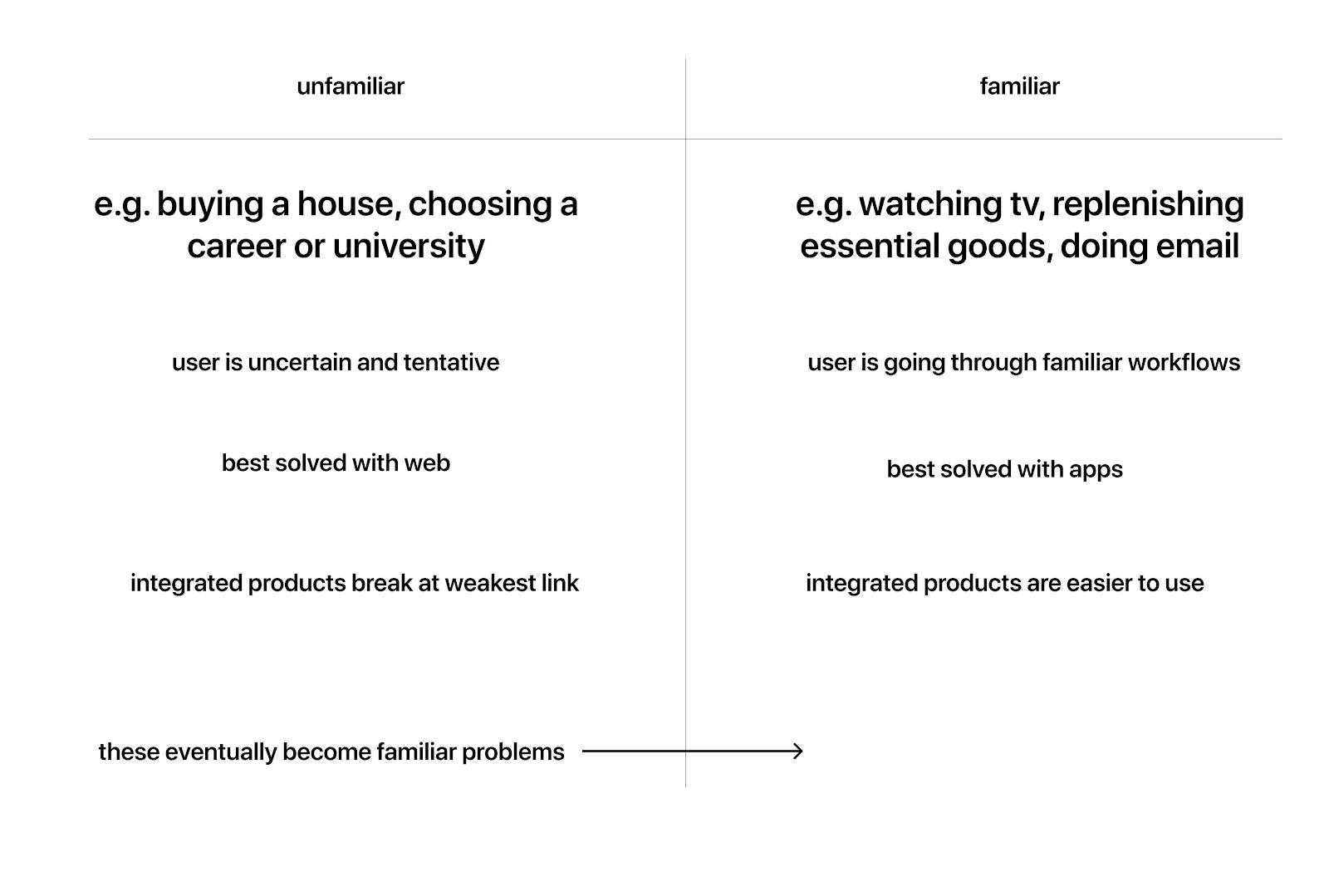 使用App VS 在移动端使用网页的对比,代表了我们如何分配时间。我们把大部分时间花在熟悉的问题上,但却有源源不断的陌生问题。