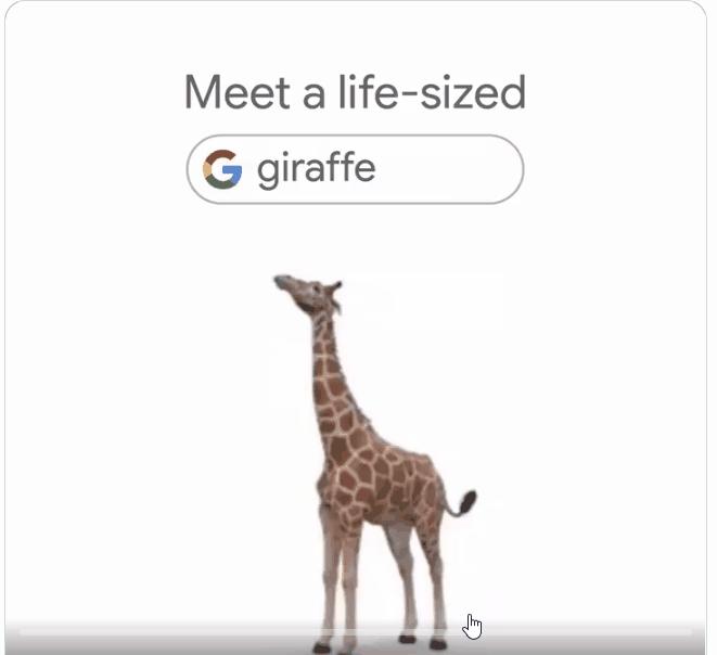 谷歌从去年开始在其搜索中显示3D动物,最近,又增加了50种动物,除了小熊猫和猫,还有长颈鹿、牛、斑马、猪和河马等。
