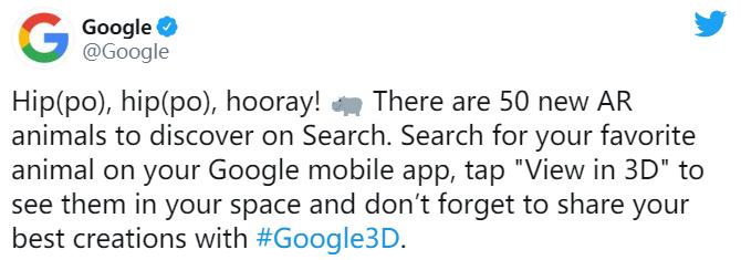 如果你喜欢和朋友和家人分享动物AR,谷歌刚刚在其搜索引擎上增加了50个新的动物。