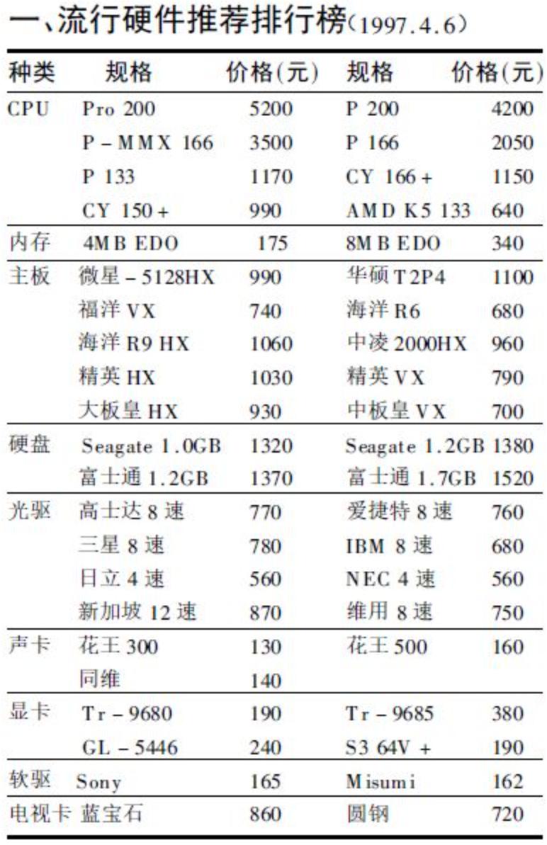 97年的电脑配置和价格