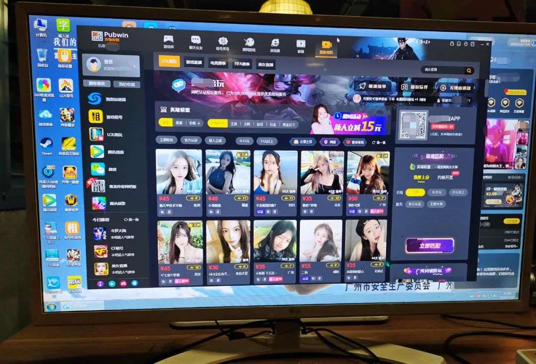 一开机就弹出一个工作台,各种装备秒回收,还有LOL陪玩,一小时35-55元。