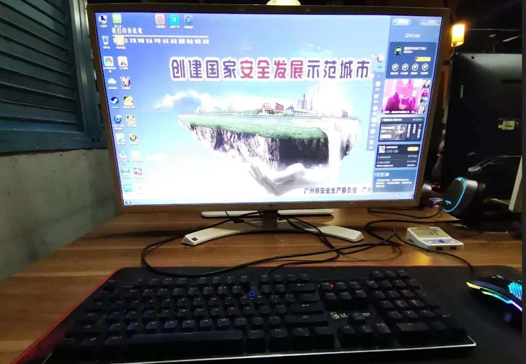 我找了台机坐下,微信扫码开机,键盘是机械键盘,鼠标是游戏鼠标,现在的网吧硬件配置真好。