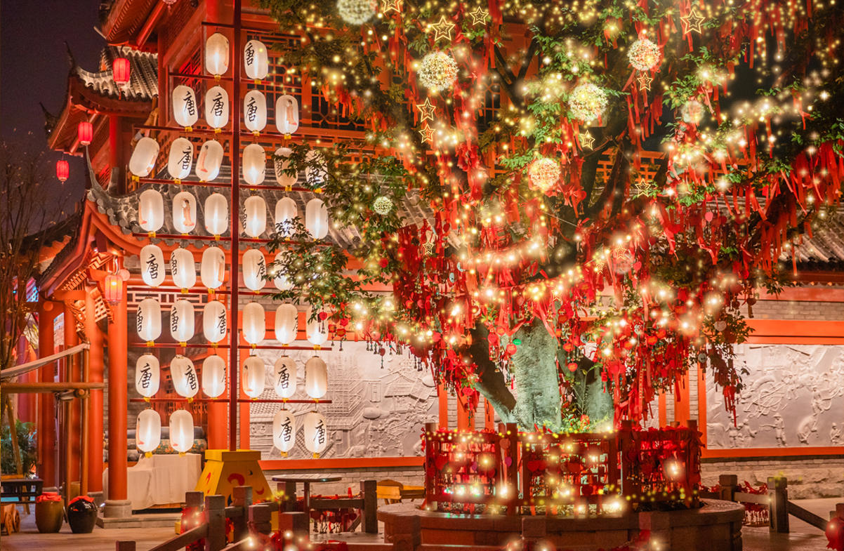 在浪漫的许愿树下听月老解签
