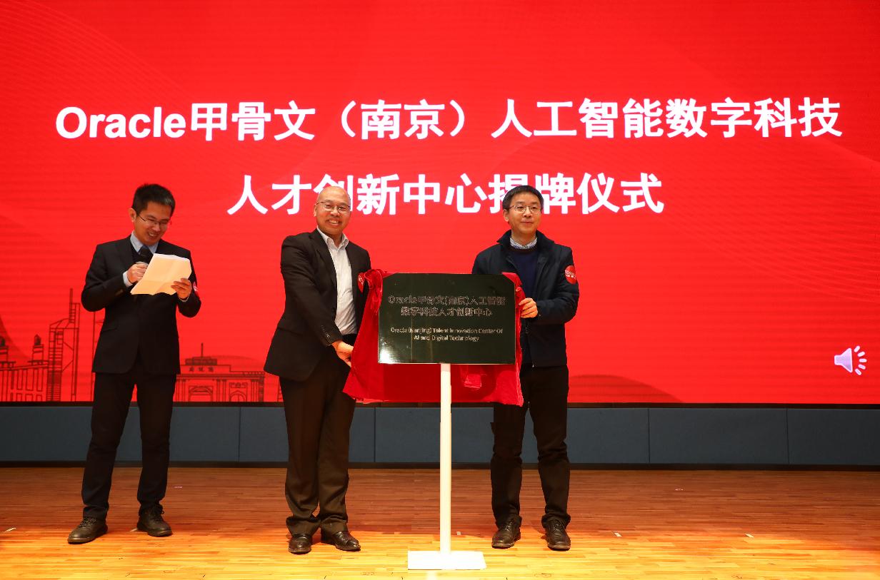 在现场领导和嘉宾的共同见证下,“Oracle(南京)人工智能数字科技人才创新中心”正式揭牌。