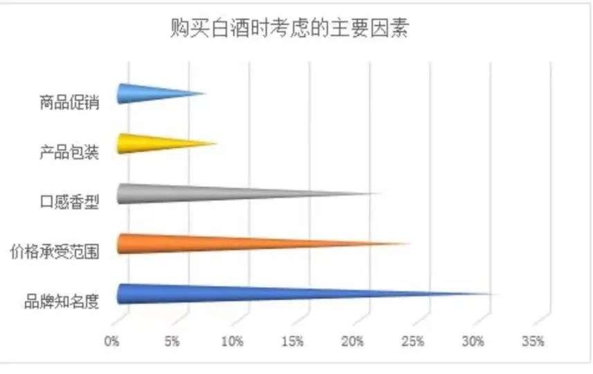 只是,仅靠文案来吸引年轻人引发共鸣不是长久之计。有相关报告显示,在购买白酒时,消费者对品牌的依赖度占据了30%以上。除此之外,口感、香型、促销活动等也都占据一定因素,广告宣传占据比例最小,只是起到辅助的作用。