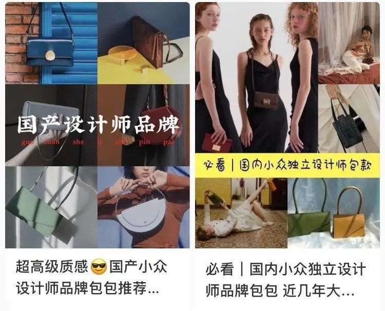 26岁的可儿是粉丝20w的小红书时尚博主,热衷好物推荐。今年11月,她发布了一期名为“35个国内外小众包包品牌”的分享,得到了1.1万的收藏。她认为,如今国内小众品牌包包的版型、质感越做越好,“大牌包可以说是潮流风向,但国产包也慢慢开始有自己的特色了。”