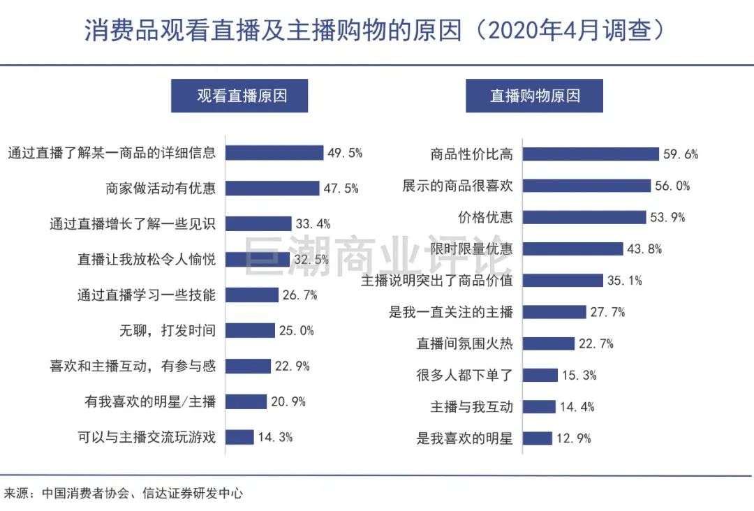 中国消费者协会的数据也显示,消费者积极参与直播电商购买,一方面是因为产品性价比高,另一方面则是产品信息丰富、信任主播推荐、用户体验更佳。
