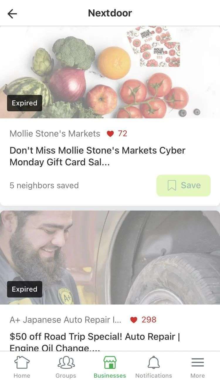 (本地小商家提供的优惠折扣,截图自Nextdoor)