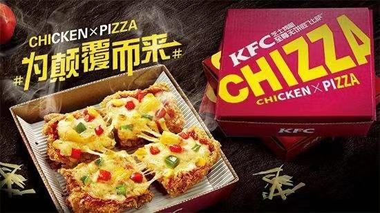 但有时也会从新奇到猎奇画风逐渐跑偏。比如推出chicken+pizza的Chizza,就是把鸡炸完再烤最后铺上一层厚芝士,简称热量大爆炸;