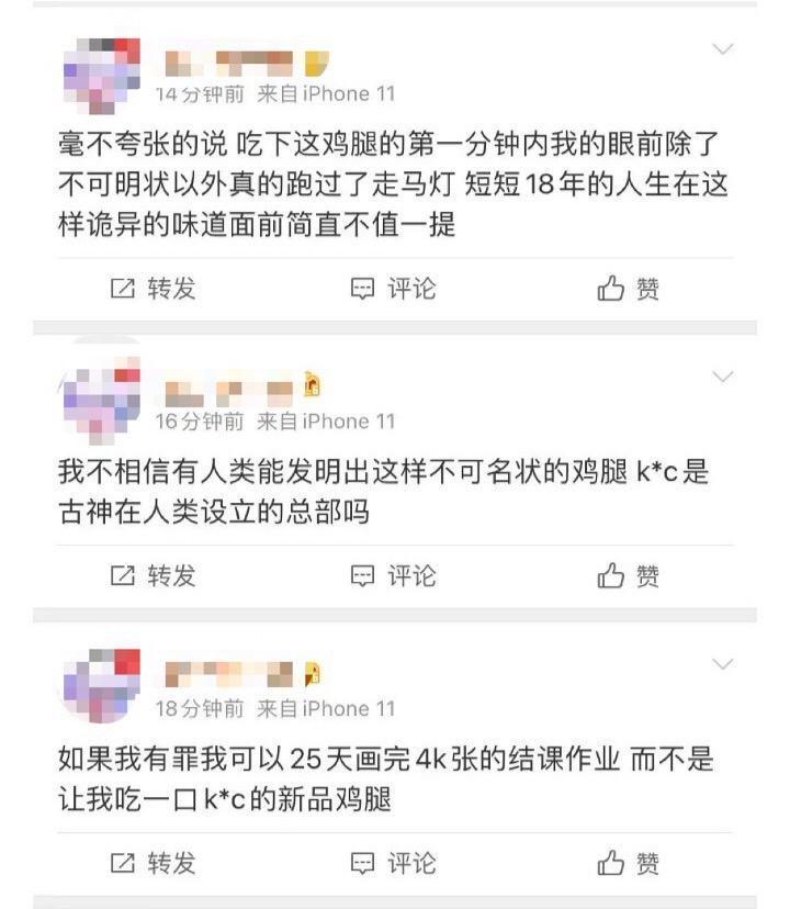 比如“我把屁撕了自己吃的”以一针见血的比喻手法表达吃鸡不如吃屁的无奈;有人表示尝后“断情绝爱”,为我佛慈悲吃出了一位参禅悟道、遁入空门的大师。