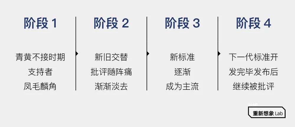 这样的「毛虫型前进」或「大周期更新」,导致了产品路线图令人又爱又恨的一个特质:很多的时间产品都处在「半成熟期」,或者说始终没有一段「稳定红利期」或者很短。特征是在一半周期里被市场追赶,另一半周期里超越了时代。