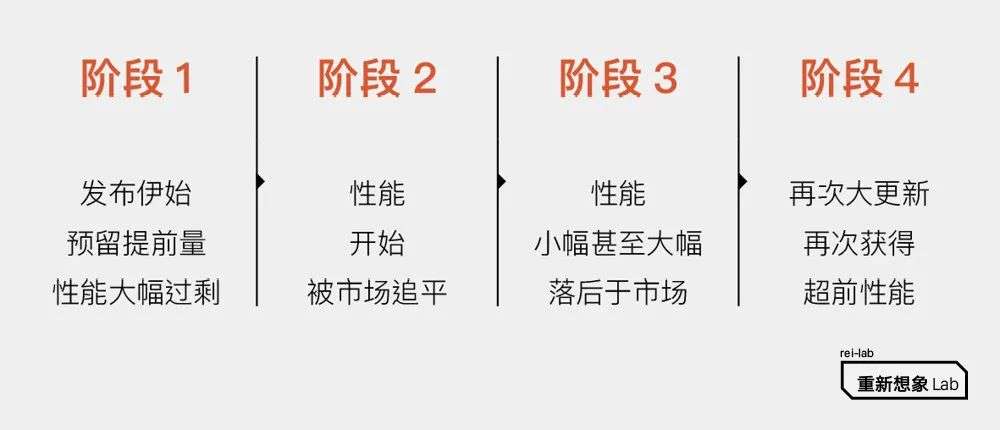 在没有明显年度周期的产品线,性能的设定也沿这样的路径前行: