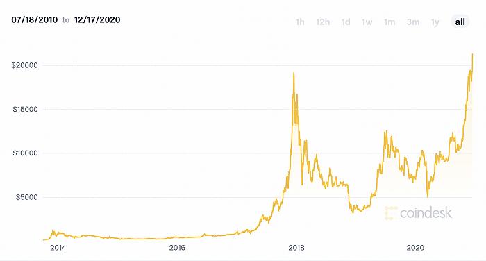 比特币连番暴涨首破2.2万美元背后:机构投资者入场成主因