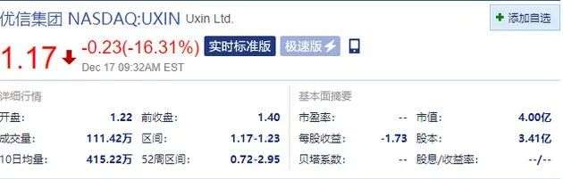 受此影响,优信美股开盘大跌超16%。股价为1.17美元,总市值4亿美元,再次面临退市风险。