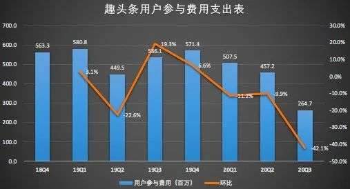 营销支出减少与趣头条减少用户参与补贴有关。财报显示,趣头条三季度用户参与费用为2.65亿元,较去年同期的5.36亿元,减少51%,较上一季度的4.57亿元,减少42%。