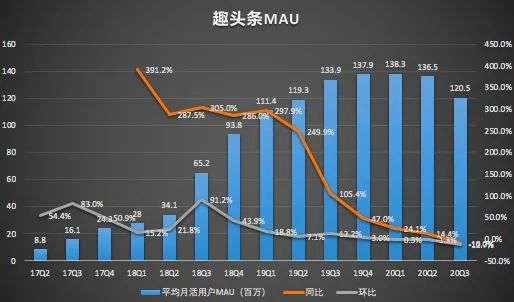 财报显示,2020年三季度趣头条的月活跃用户(MAU)为1.205亿,较二季度的1.365亿,骤减1600万。